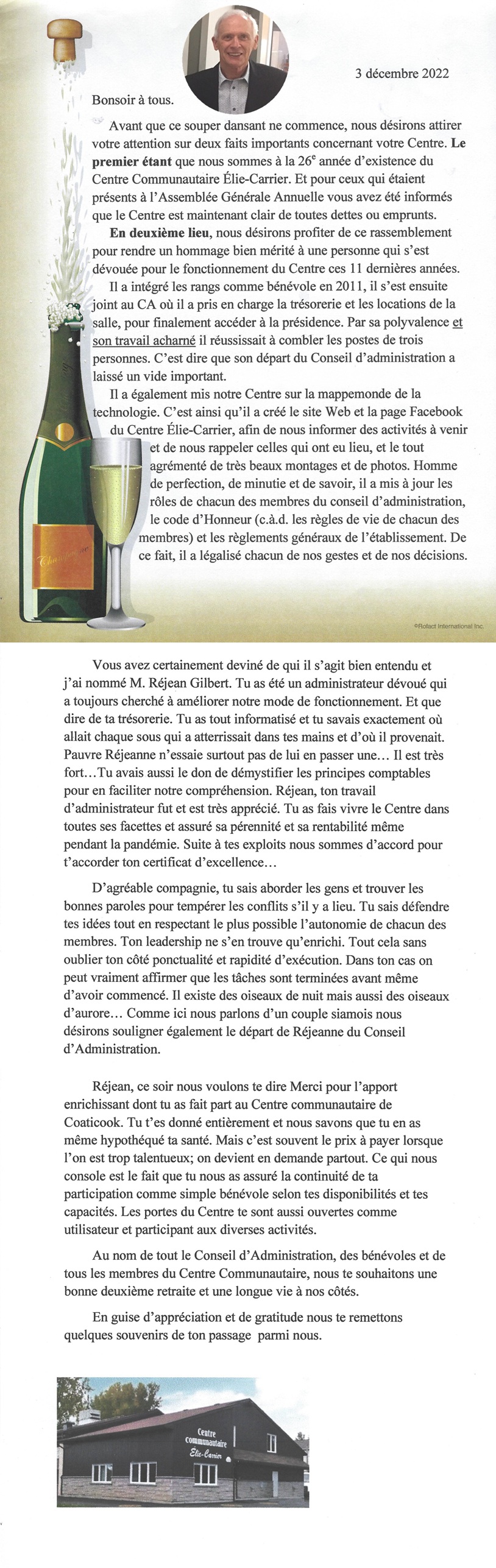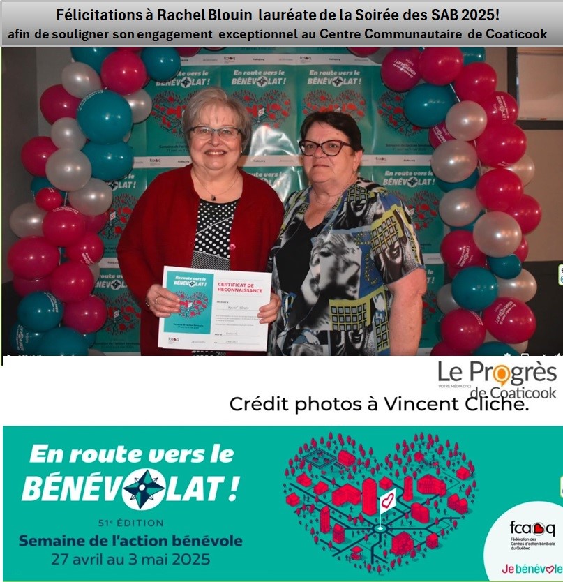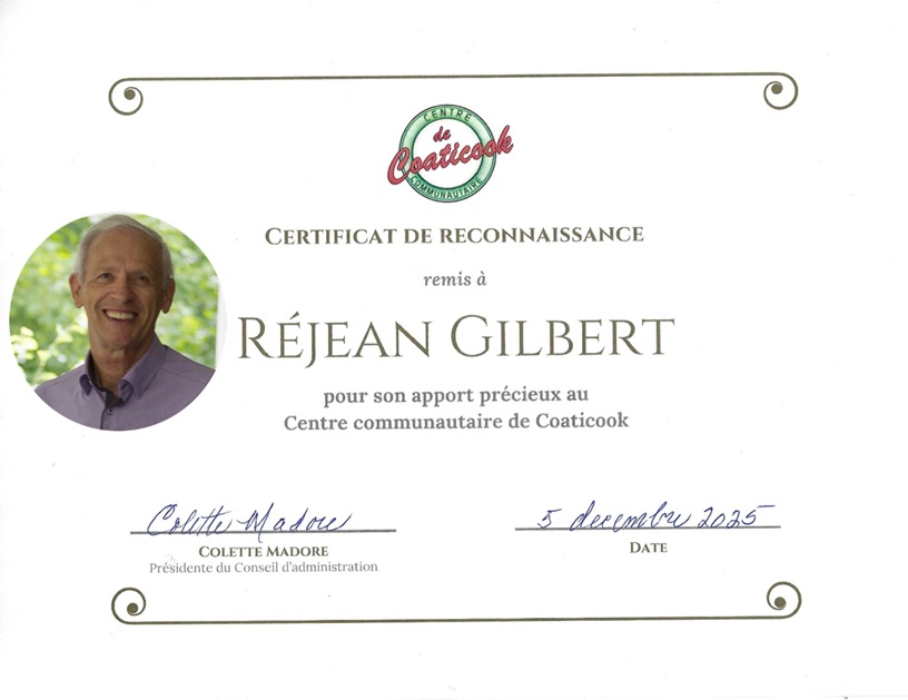 Bravo Madeleine Thibault et Jean-Louis Jacques, deux bénévoles assidus et très impliqués au Centre communautaire Elie Carrier de Coaticook