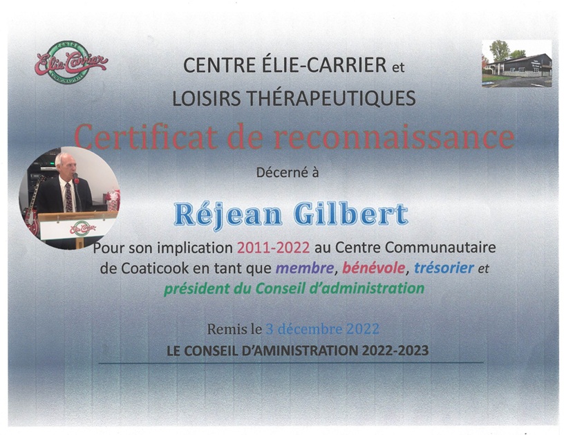 Bravo Madeleine Thibault et Jean-Louis Jacques, deux bénévoles assidus et très impliqués au Centre communautaire Elie Carrier de Coaticook
